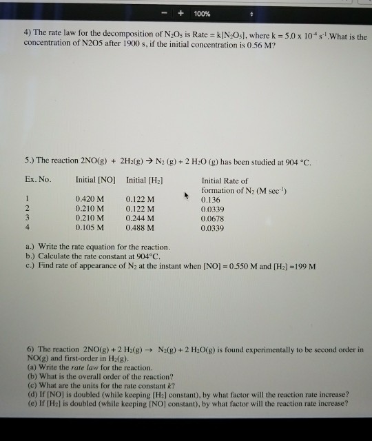 Solved 100 4 The Rate Law For The Decomposition Of N2 Chegg Com