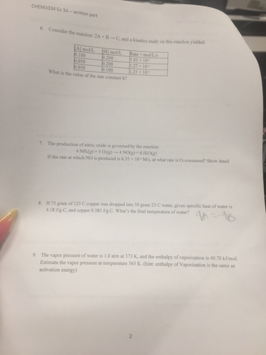 Chem1034 Ex 3a Written Part Consider The Reaction Chegg Com
