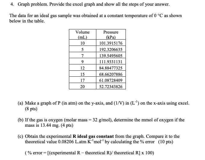 Solved 4 Graph Problem Provide The Excel Graph And Show Chegg Com