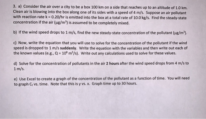 Solved 3 A Consider The Air Over A City To Be A Box 100 Chegg Com