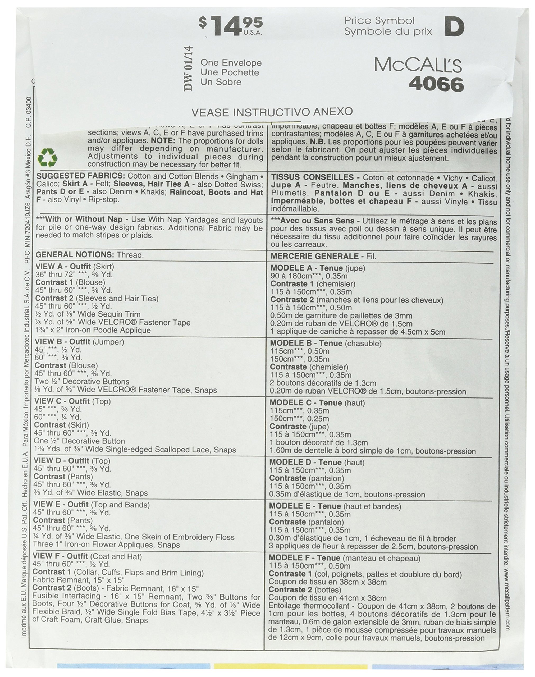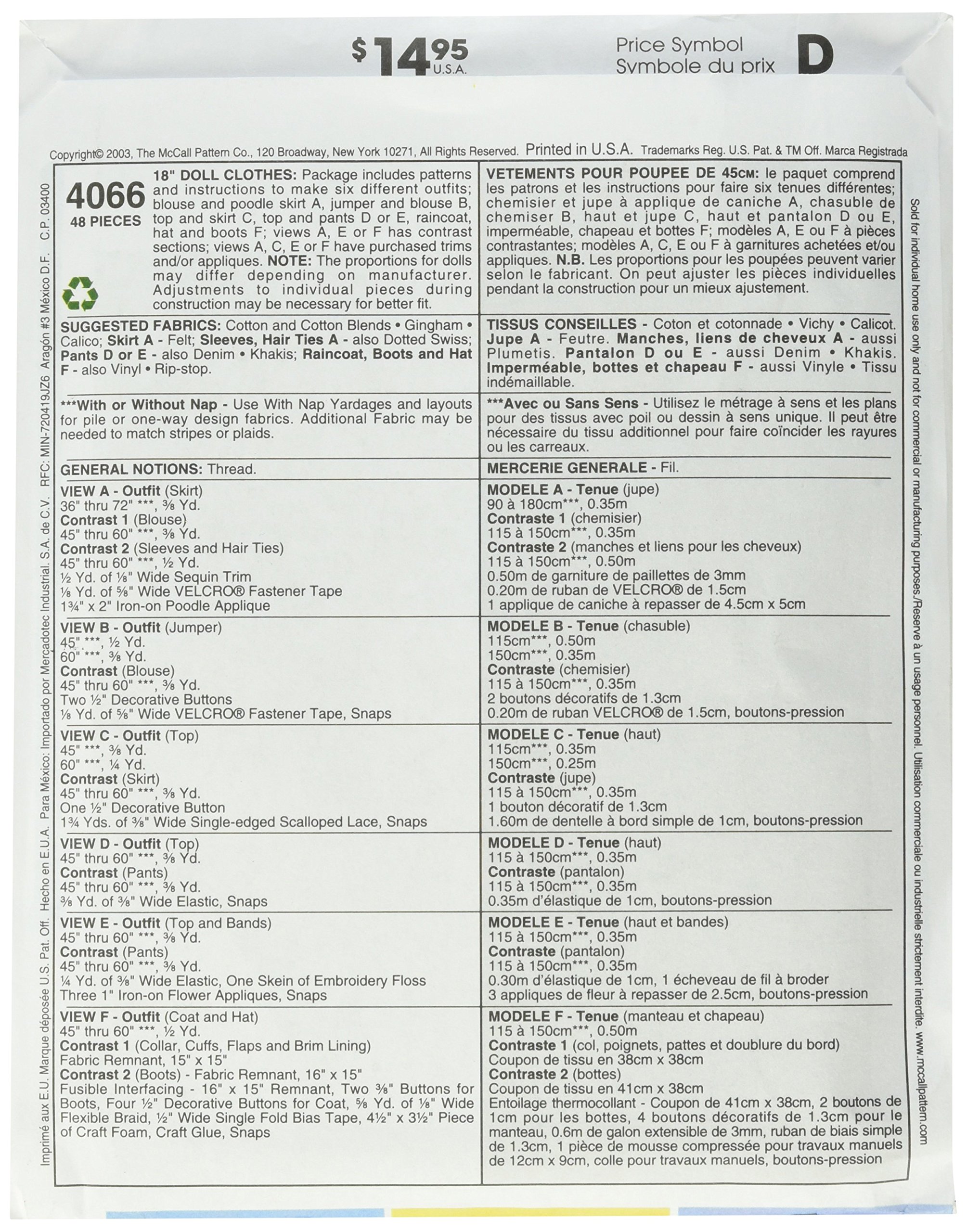 Mccall S Patterns M2609 Clothes For 18 Doll One Size Only Buy Online In Cyprus At Desertcart Com Cy Productid