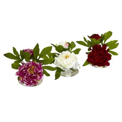 Silk Artificial Fake Peony Flower Arrangements W Glass Vase Set Of 3 Ebay