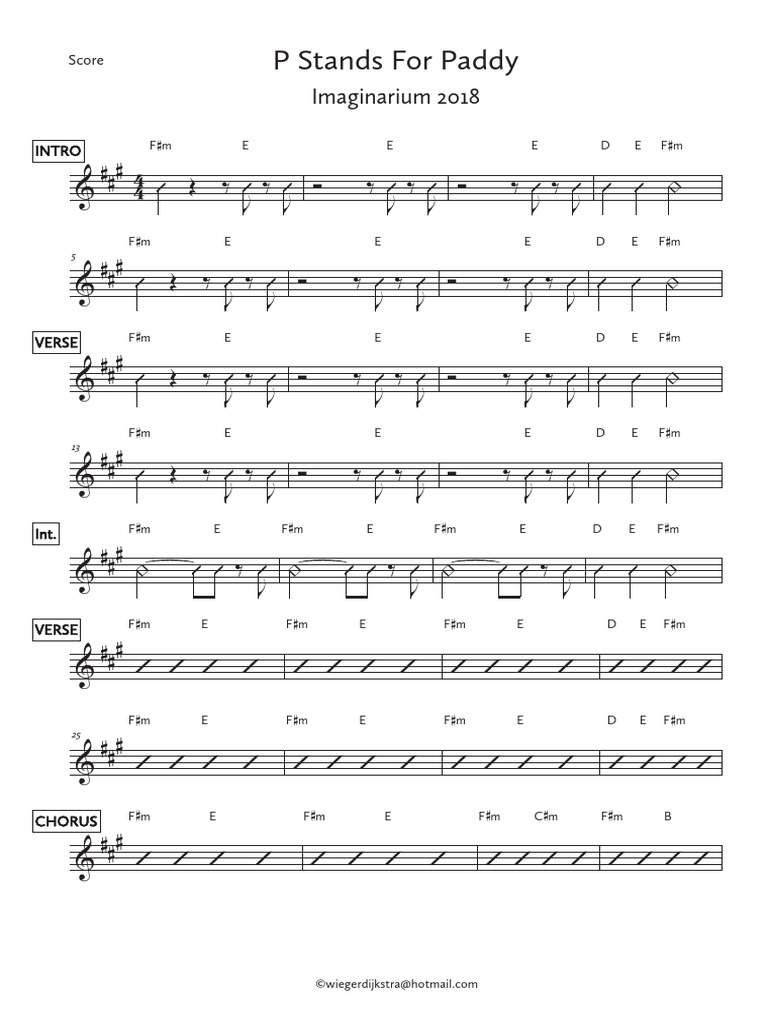 Lead Sheet P Stands For Paddy