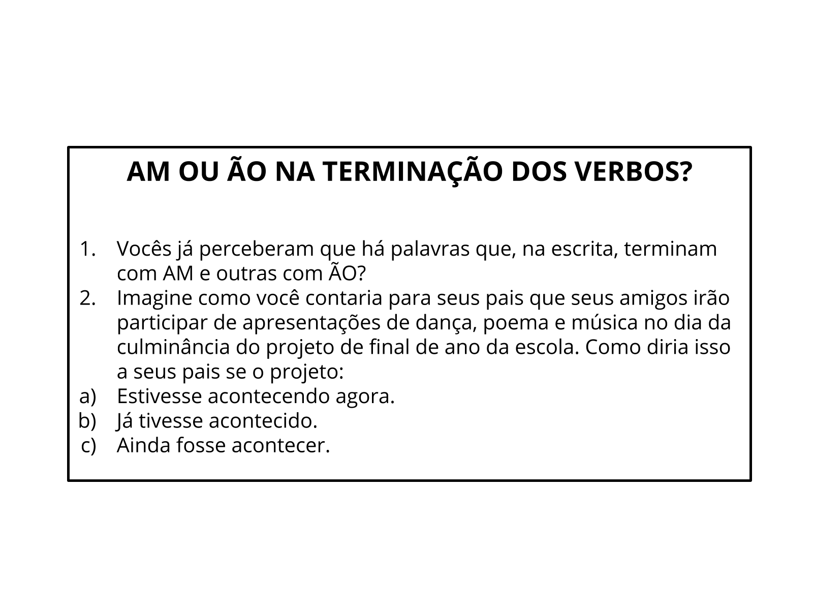 Plano De Aula 5º Ano Lingua Portuguesa Am Ou Ao Na Terminacao Dos Verbos