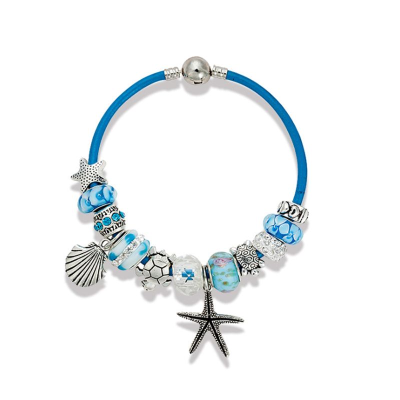 Fit Beads Luxury Fashion Brand Diy White Beads Blue Leather Cord Starfish Pendant Bracelet For Women Love From Qiram 15 03 Dhgate Com