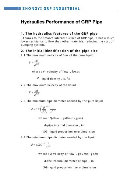 Hydraulics Performance Of Grp Pipe China Grp Com