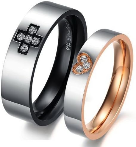 K Mega Bijoux Inox Cross C Ur Hommes Femmeslover Couple Mariage Anneaux Set Taille J V Hommes Q Amazon Fr Bijoux