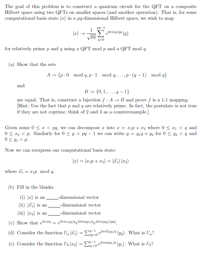 The Goal Of This Problem Is To Construct A Quantum Chegg Com