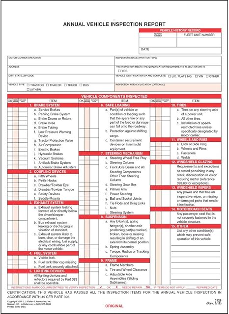 3 Ply Detailed Drivers Vehicle Inspection Report 10 Pk J 5 5 X 8 5 31 Sets Of Forms Per Dvir Book Carbonless Book Format Meet Fmcsr Requirements J Keller Associates