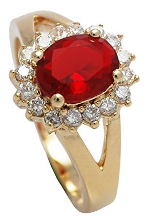 Women S 18kt Genuine Gold Filled Uk Guarantee 3 µ Ring Classic Design Set With A Ruby Red Simulated Diamond Centre Stone Accented With Brilliant Rounds Amazon Co Uk Jewellery