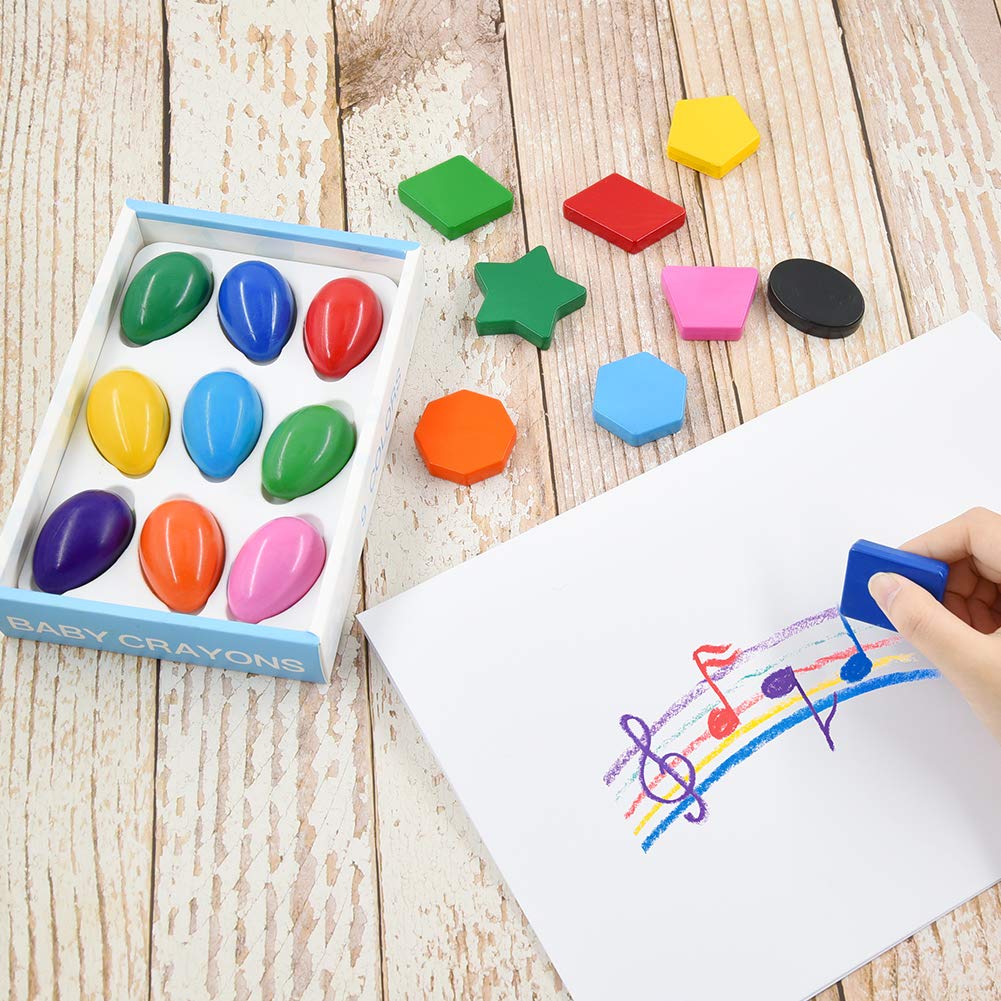 Lanthour Pastelli Per Bambini Neonati Bambino Adatto Per I Piu Piccoli 18pcs Pastelli Colorati Matite Colorate Impilabile Non Tossico Impugnatura Piu Facile Uova Forma E Forma Geometrica Accessori Per Disegnare E Colorare