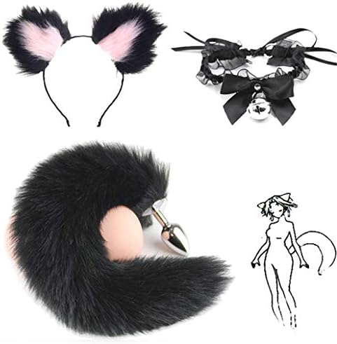 Amazon Com Trying Fluffy Black Faux Fox Tail B U T T Pl U G T O Ys Multicolor Plush Cat Ears Headband Lace Bell Collar Cosplay Costume Props Jhkl Color Black Pink Size S Home