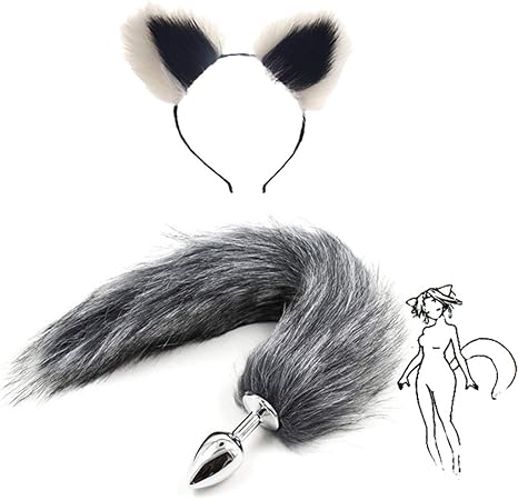 2 Pcs Fluffy Grey Interval White Faux Fox Tail B U T T Pl U G T O Ys Multicolor Plush Cat Ears Headband Body Massage Cosplay Costume Props S White Black Amazon Co Uk Health Personal Care
