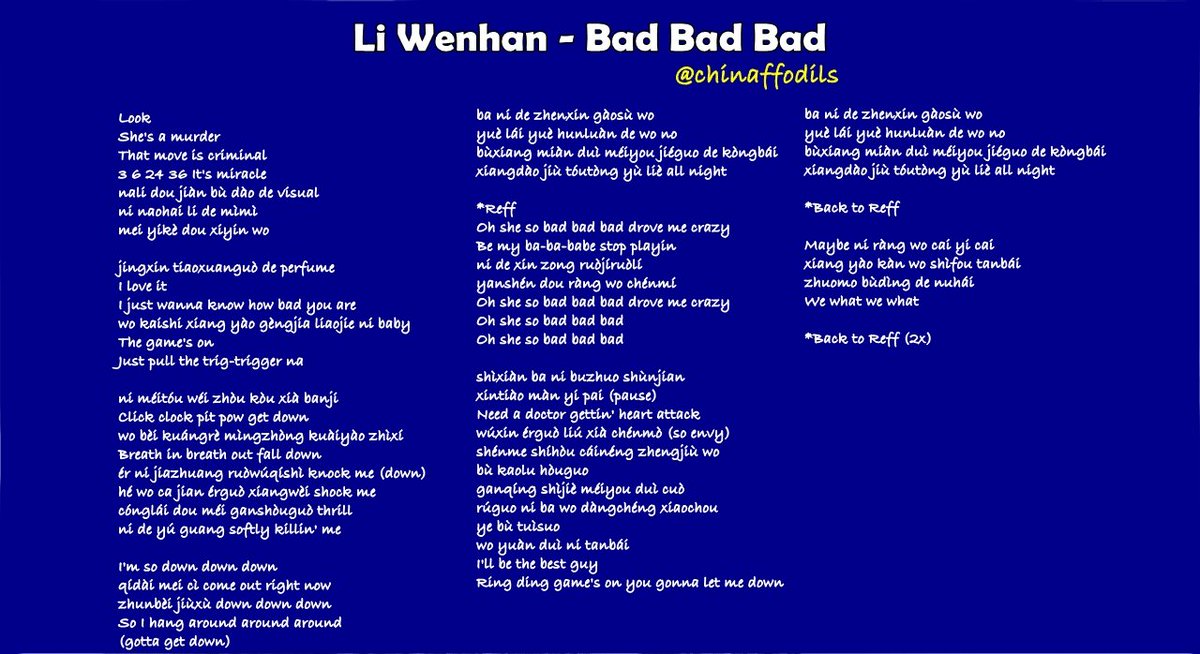 Indo Sub Youth And Melody 0506 Unine Li Wenhan Bad Bad Bad Romanization Pinyin Lyrics By Chinaffodils Unine Readygo Liwenhan Badbadbad Uflight T Co Hi3llgry2x