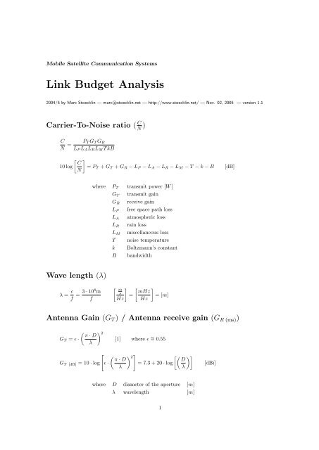Link Budget Analysis Marc Ph Stoecklin
