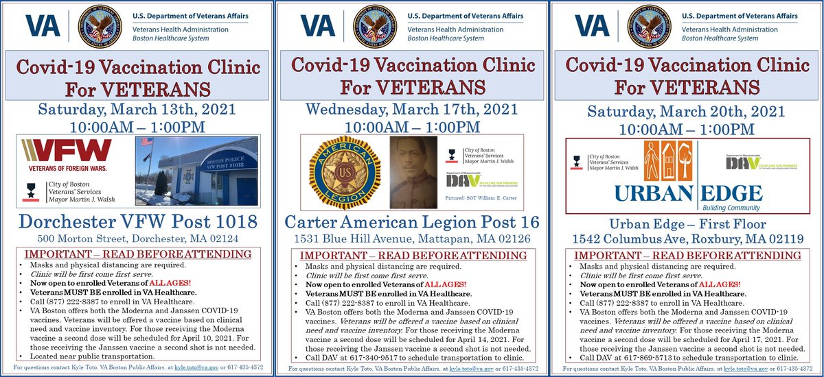 Va Boston Hc We Have Three Mobile Vaccine Clinics Scheduled This Week Sat 3 13 Dorchester Vfw Wed 3 17 Mattapan American Legion Sat 3 Urban Edge In Roxbury T Co P7fmylpfri