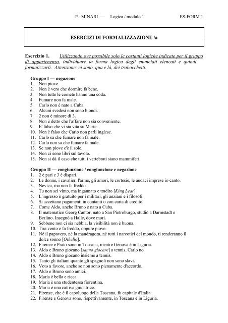 Esercizi Di Formalizzazione A Esercizio 1 Utilizzando Ove