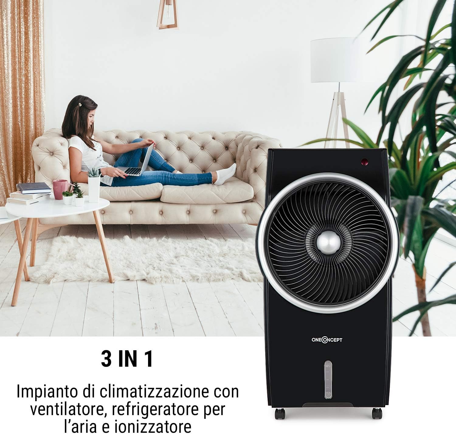 Nero Umidificatore 3in1 Oneconcept Freshboxx Pro 3 Velocita Raffrescatore Evaporativo Oscillazione 1 65 W 966 M H Ventilatore Flusso Daria Verticale Manuale Serbatoio 5 L Condizionatori A Evaporazione Quickandcleaninc Climatizzazione E Riscaldamento