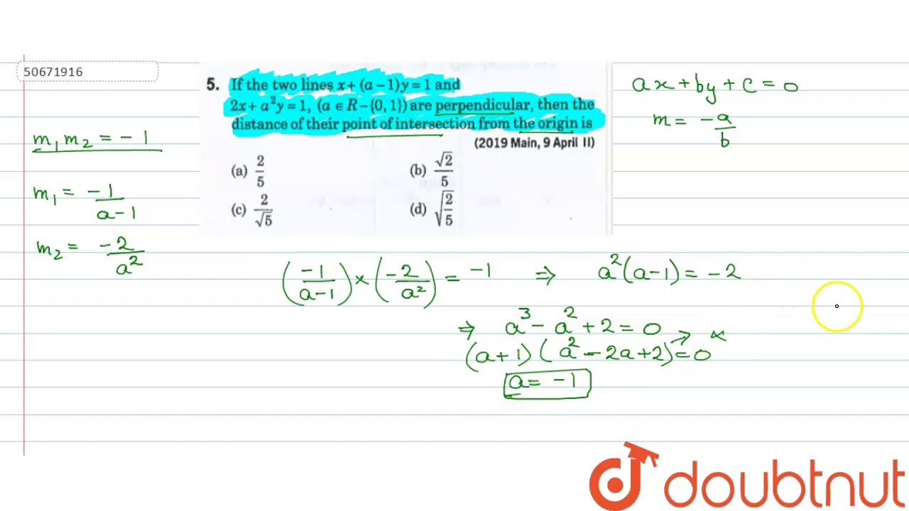 If The Two Lines X A 1 Y 1 And 2x A 2 Y 1 A In R 0 Are Perpendicular Then The Youtube