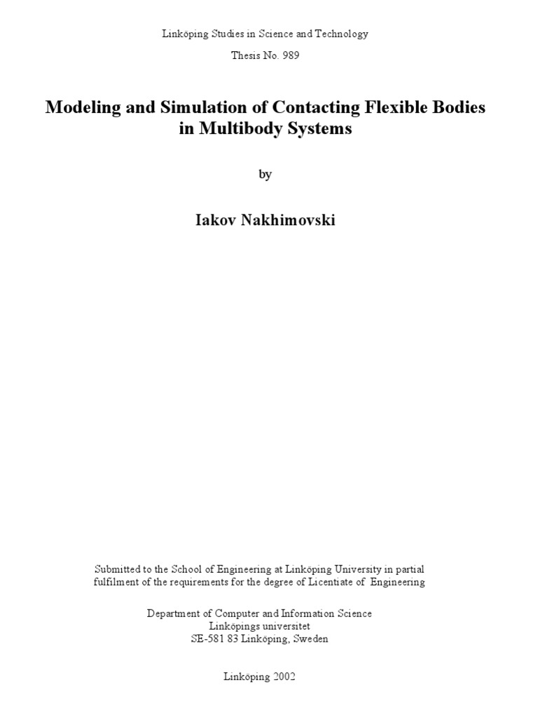 Modeling And Simulation Of Contacting Flexible Bodies In Multibody Systems Euclidean Vector Simulation